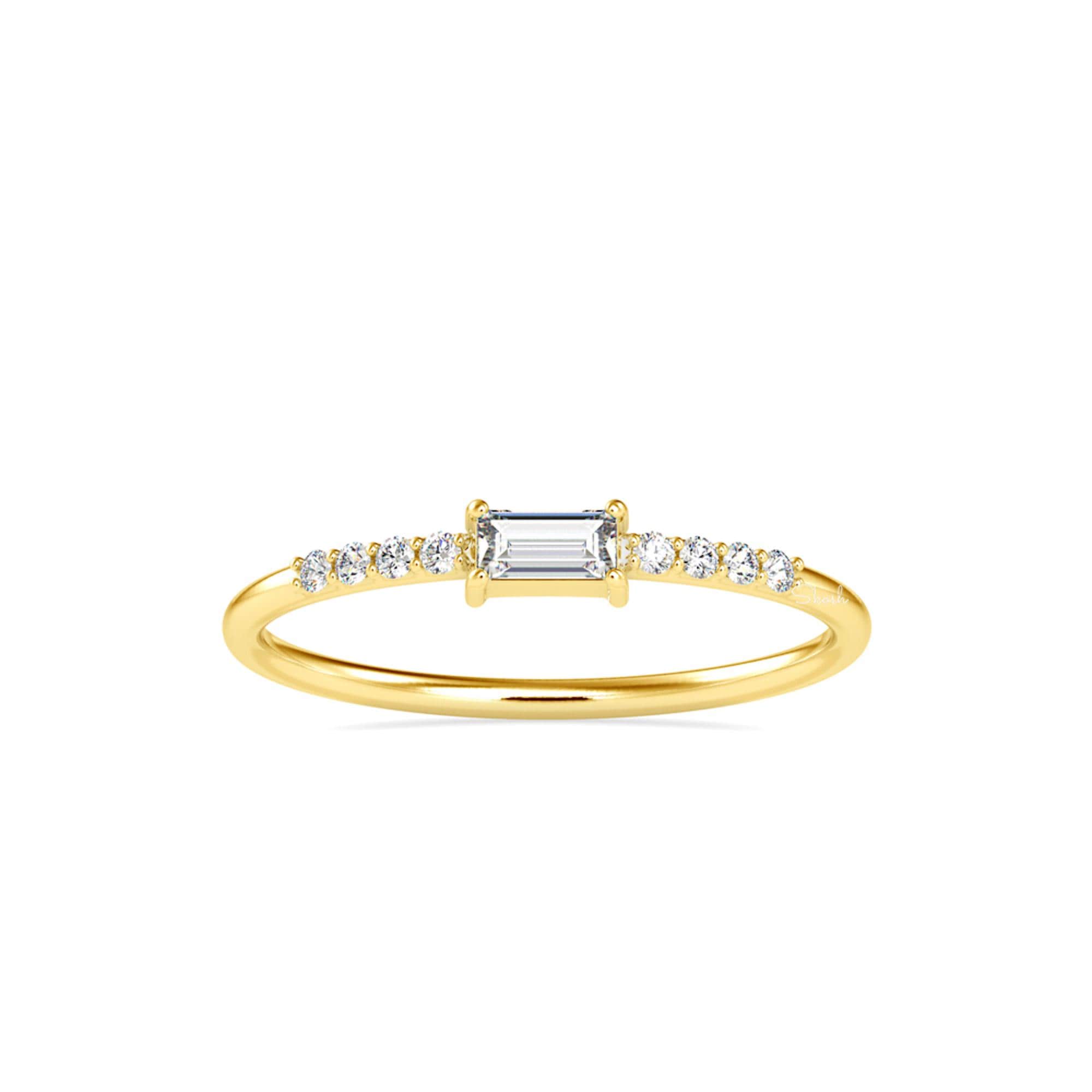 This elegant band features precision-cut baguette lab-grown diamonds, set in a delicate half-eternity style that symbolizes everlasting love. Crafted in 14k solid gold, this versatile ring is perfect as a wedding band, promise ring, bridal engagement band, or as a stacking ring to add a touch of sparkle to your collection.