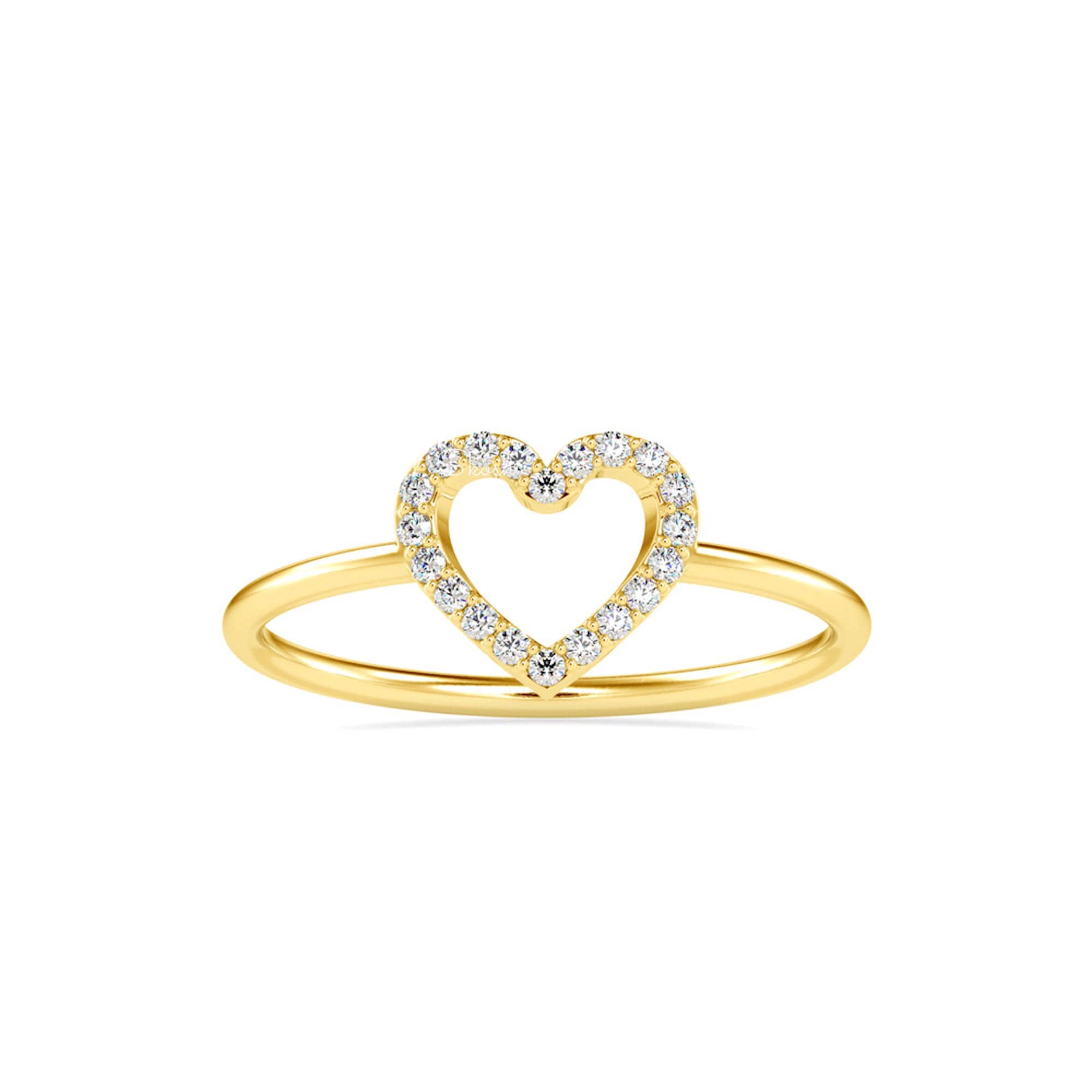 Show your love and appreciation with this Dainty Heart Diamond Ring, a timeless symbol of elegance and affection. Handcrafted in 10k or 14k solid gold, this delicate ring features a sparkling heart-shaped lab-grown diamond motif sparkling with round cut diamonds, making it the perfect promise ring, stacking ring, or an everyday accessory.