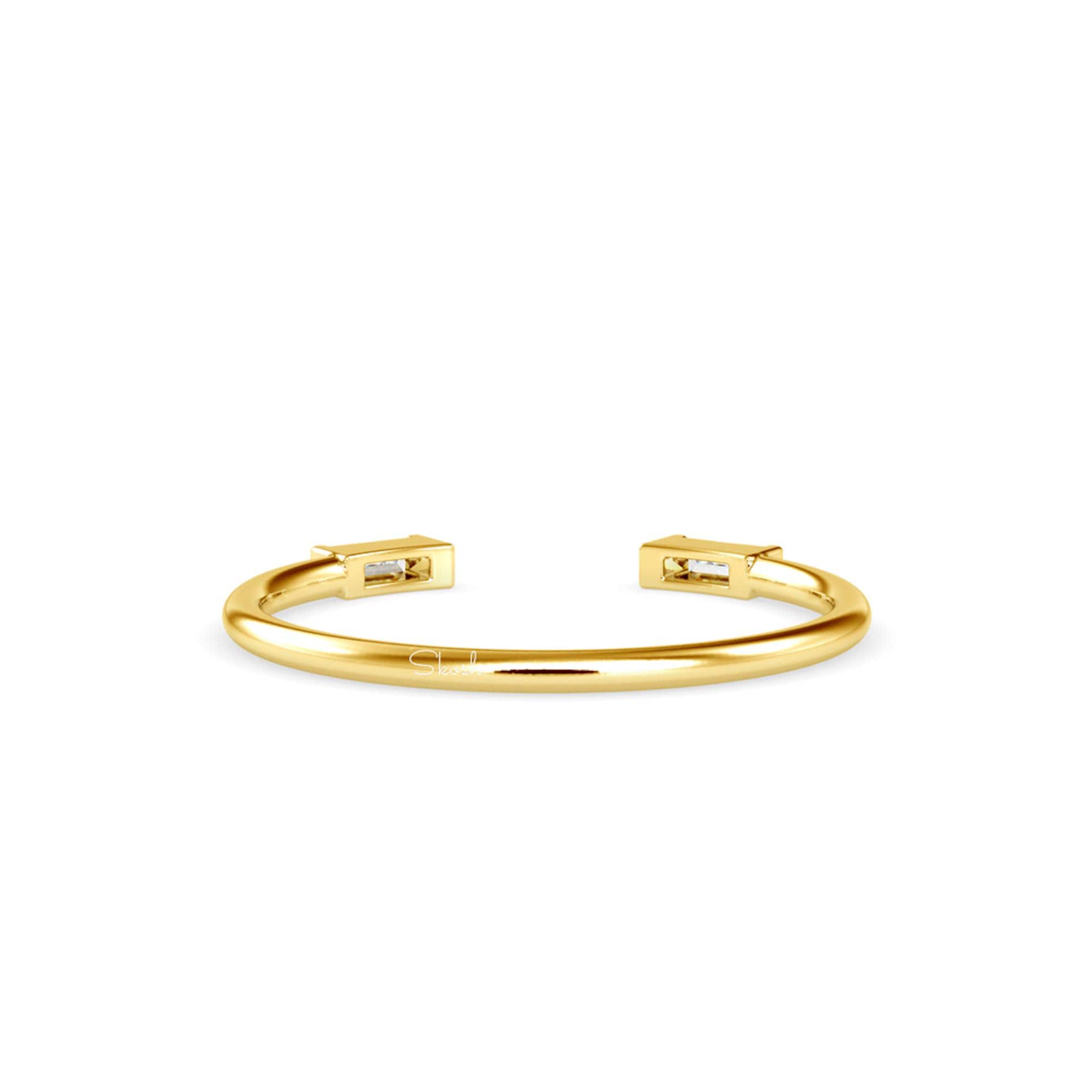Gold Baguette Double Diamond Open Cuff Stacking Ring