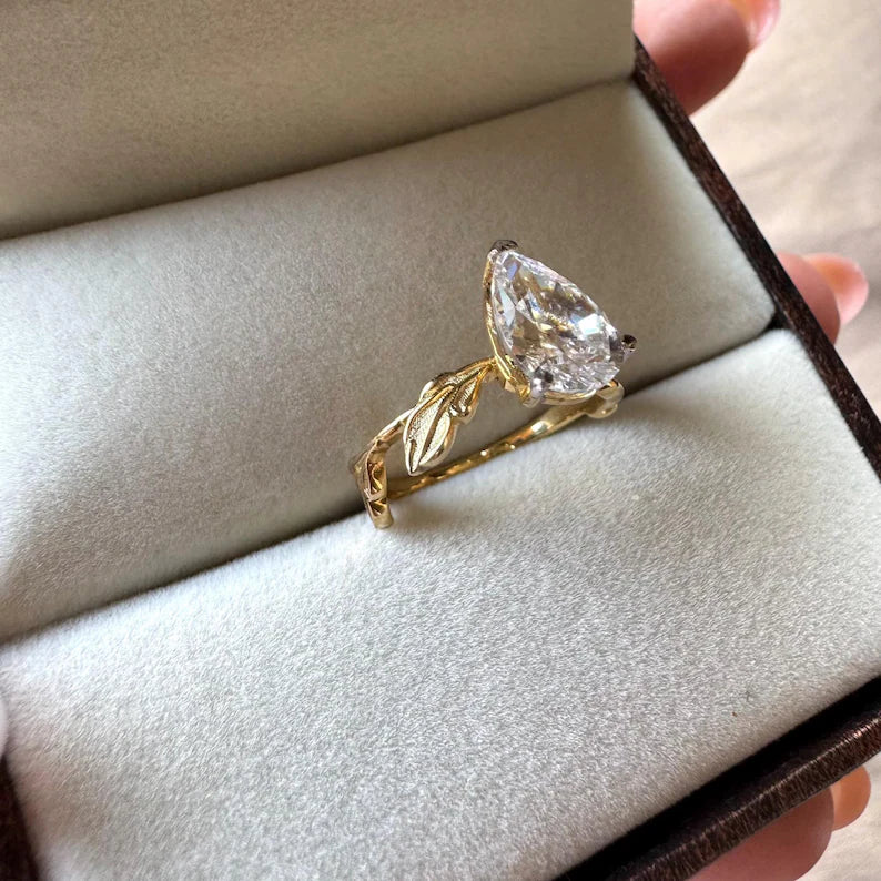 Embrace the beauty of nature with this Nature-Inspired Pear Cut Engagement Ring, featuring a stunning IGI Certified 2 Carat Lab Grown Diamond. Designed to reflect organic elegance, this ring showcases a gracefully pear-shaped diamond set in 14kt solid gold, available in white, yellow, or rose. With delicate details inspired by nature’s curves, this piece is a symbol of love, growth, and new beginnings.