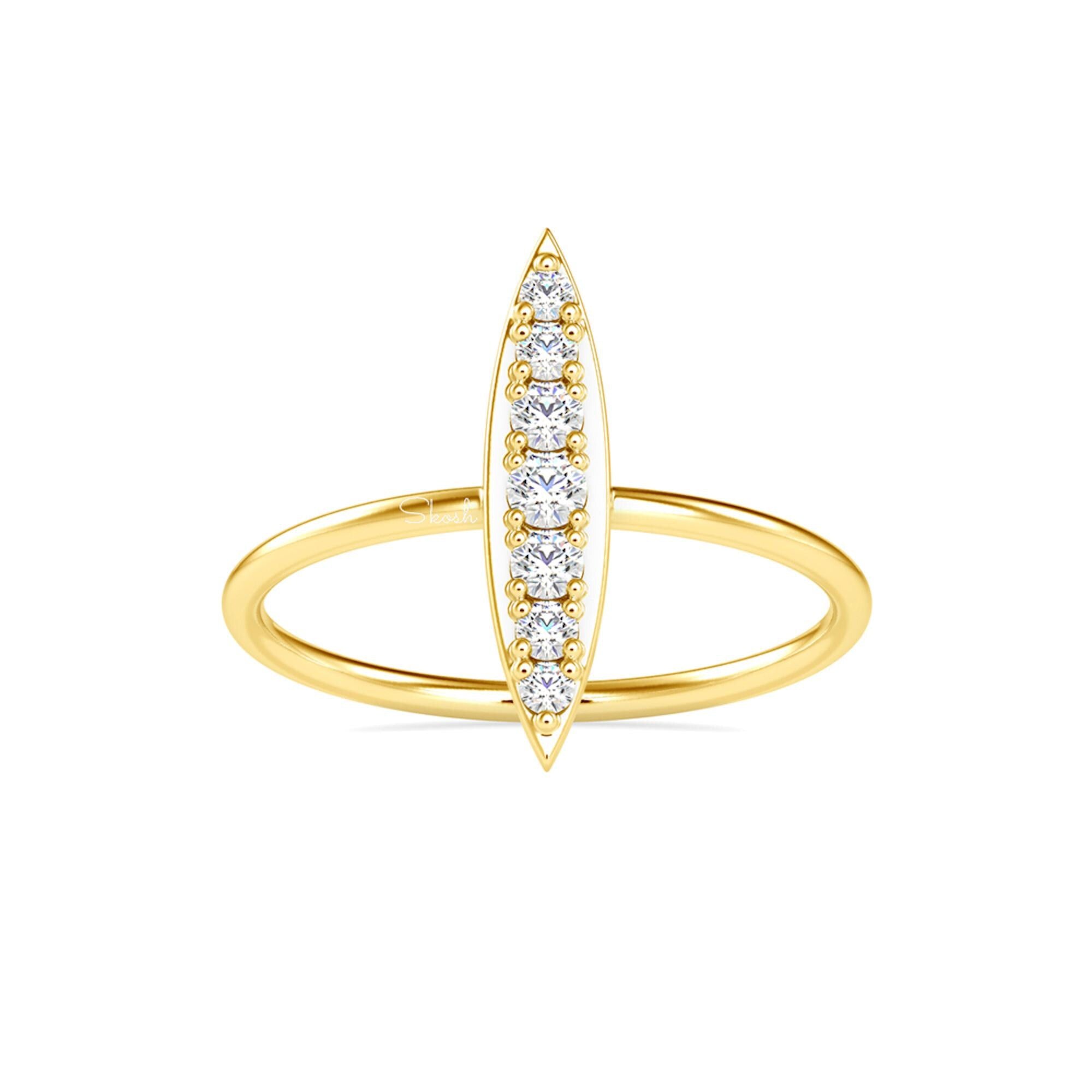 Elevate your style with this 14k Solid Gold Tapered Diamond Bar Ring. Featuring round-cut lab-grown diamonds lined up in a vertical bar, this ring offers a sleek geometric edge that’s both modern and timeless. Perfect as a unique gift for her or a chic addition to your own collection, this minimalist design effortlessly blends elegance with a contemporary twist.collection.