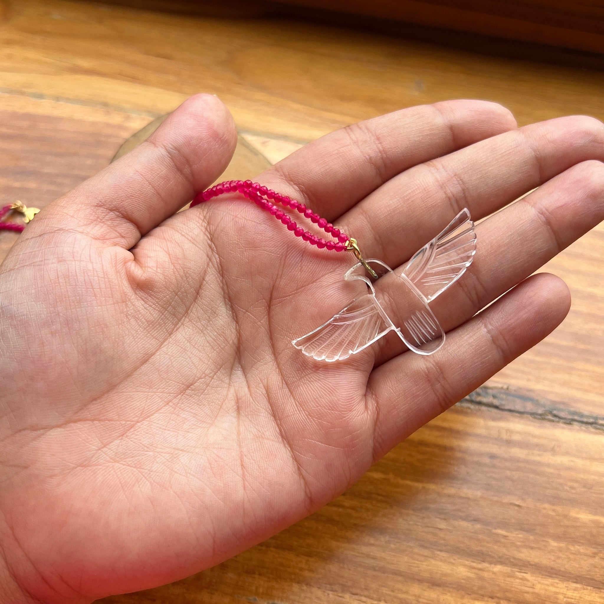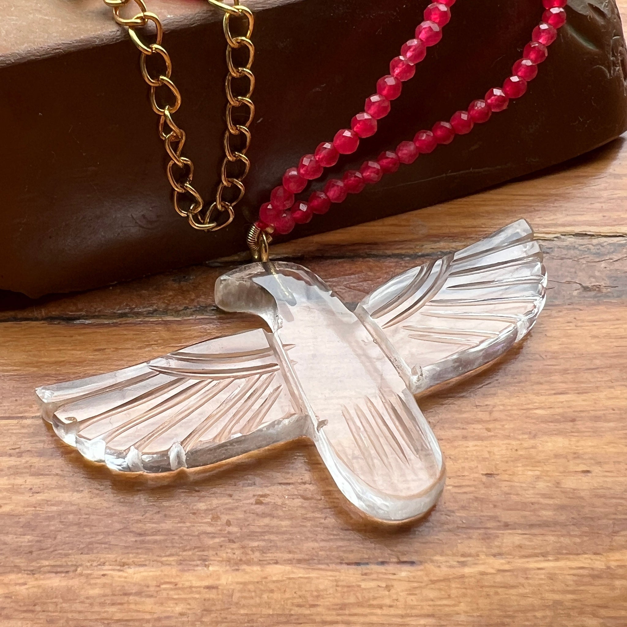 Hand Carved Crystal Soaring Phoenix Bird Pendant Necklace