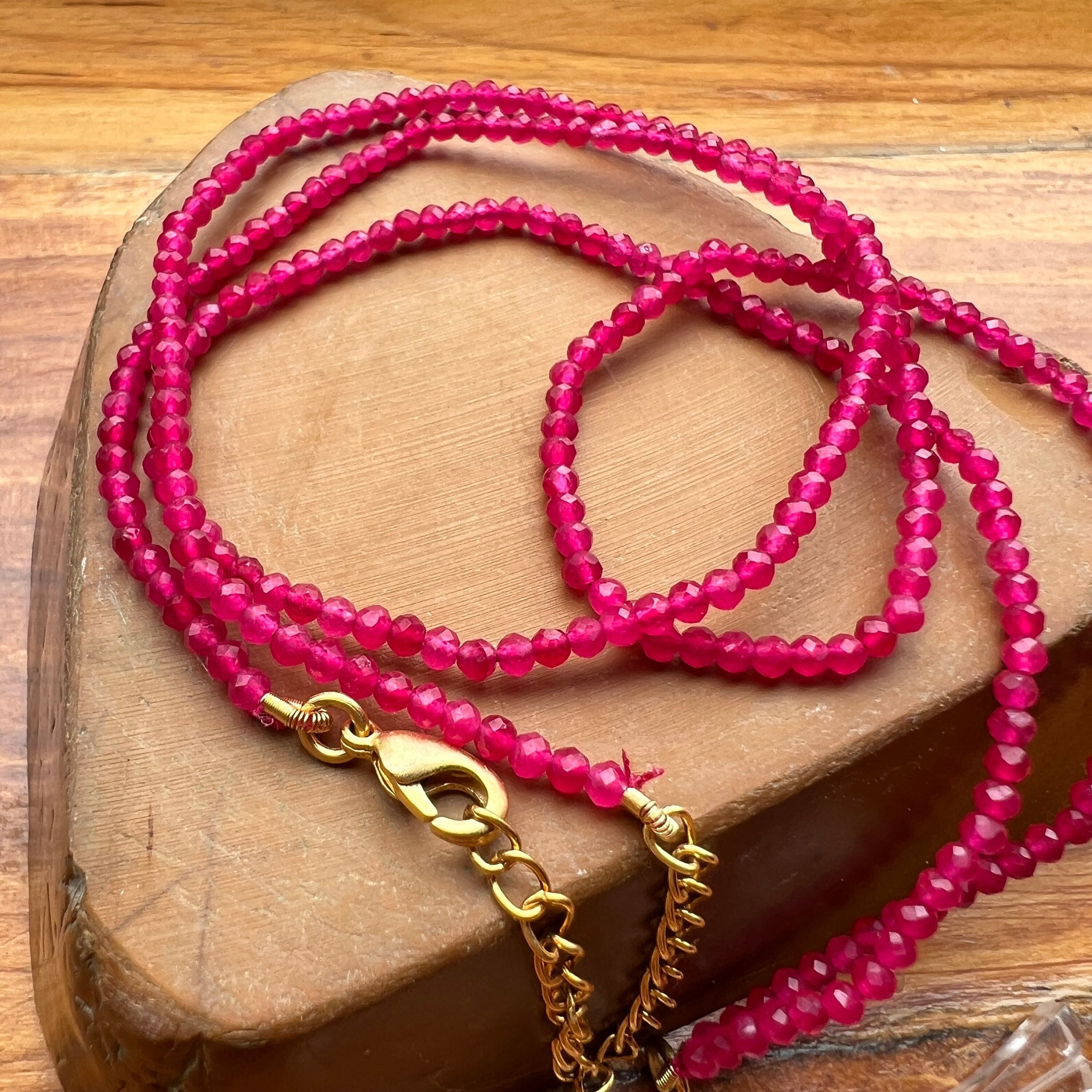 Discover the enchanting beauty of our Hand Carved Crystal Phoenix Pendant Necklace, a true statement piece designed to captivate and inspire. This stunning necklace features an intricately hand-carved crystal pendant depicting the mythical phoenix, symbolizing rebirth and renewal. The pendant is elegantly complemented by vibrant ruby beads, adding a touch of sophistication and luxury.