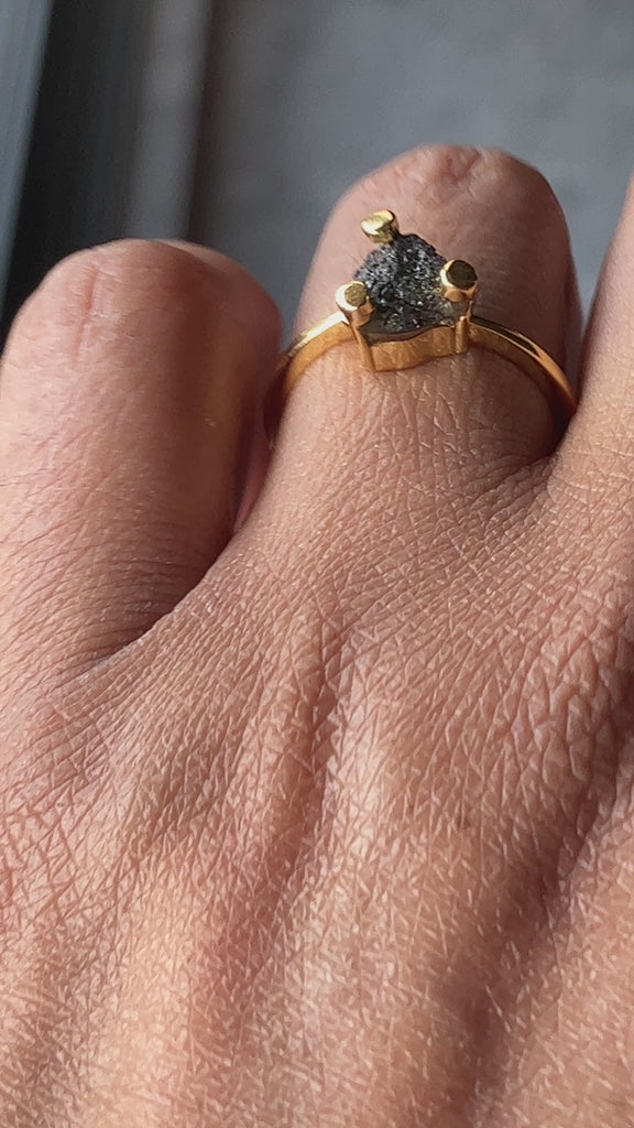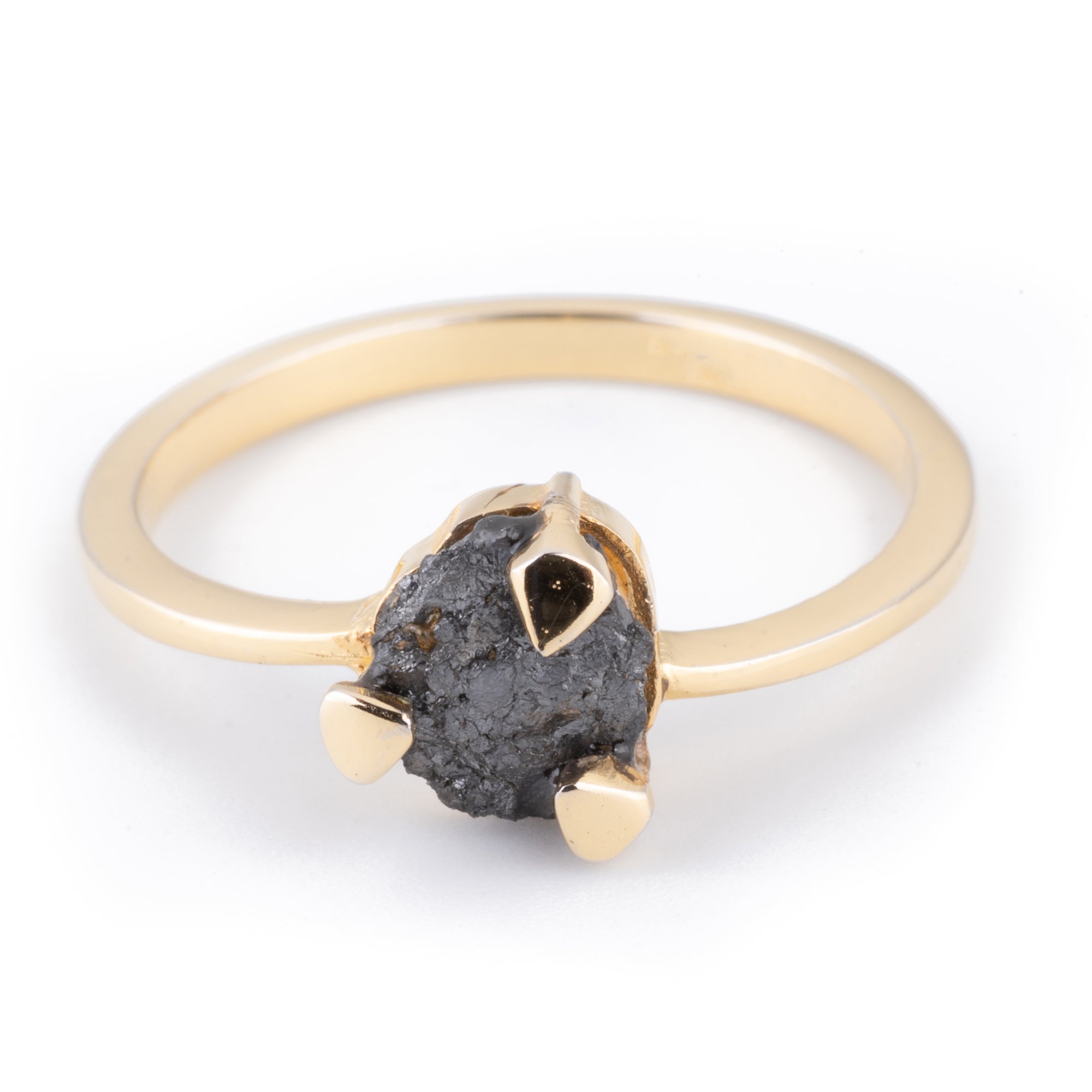 Raw Black Diamond Ring with Round Prong Setting Engagement Ring